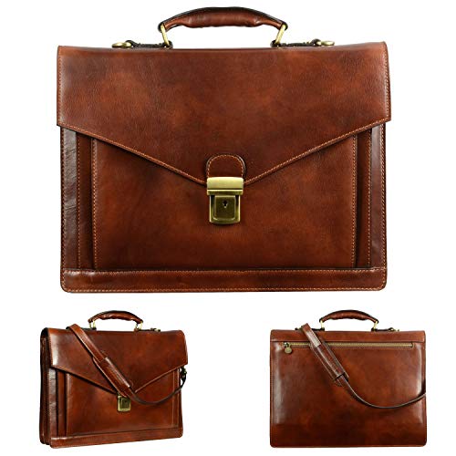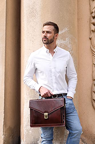 Time Resistance Leather Briefcase for Men – Business Laptop Bag – Italian Handmade Leather Bag – Attache – Gift Box Included