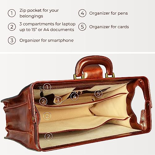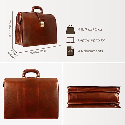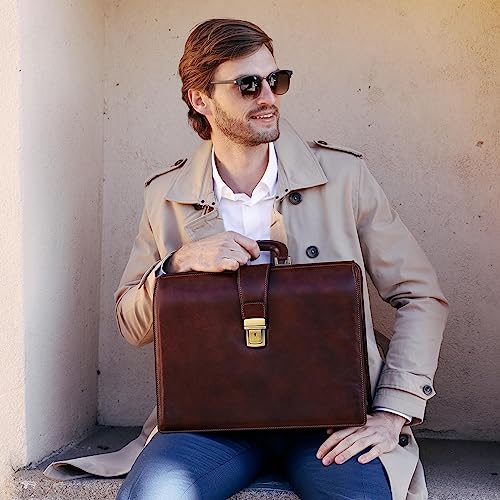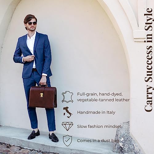 Time Resistance Leather Lawyer Briefcase – Italian Handmade Laptop Briefcase for Men and Women – Attache Case – Doctor Bag