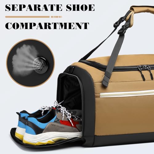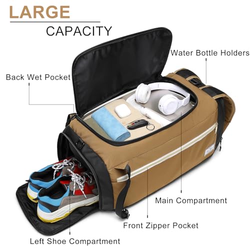 Gym Bags for Men with Shoes Compartment & Wet Pocket 4 Way Large Sports Duffle Bag Backpack Birthday/Father’s Day Gift for Men (Brown)