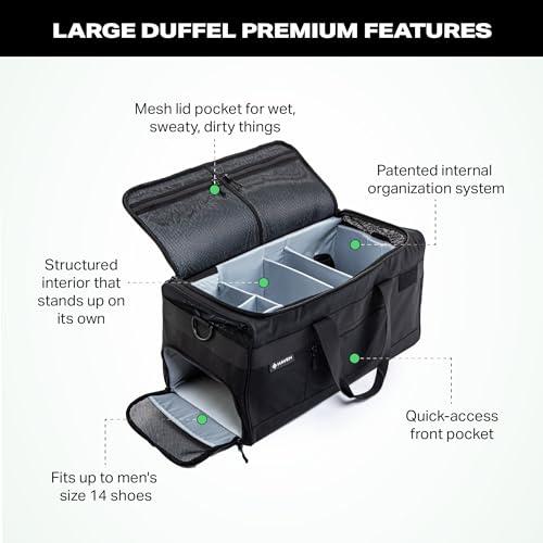 Large Duffel, Gym Bag, Tote Bag, Patented Design, Organized & Spacious, Perfect for Travel, w/Padded Shoulder Strap & Ventilated Shoe Garage™, Durable Material, Convenient (Black)