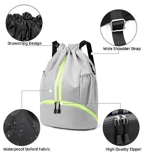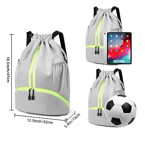 Valleycomfy Sports Drawstring Backpack – Water Resistant String Bag with Side Mesh Pockets Shoe Compartment Gym Backpack for Women & Men Grey