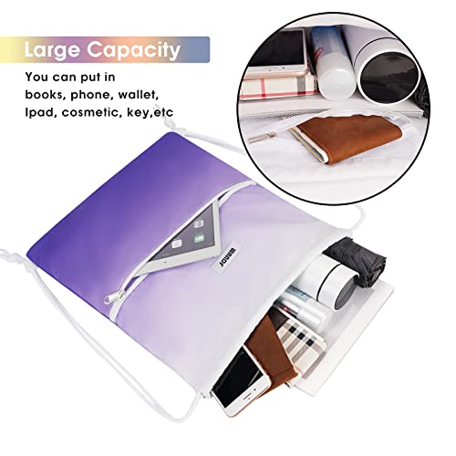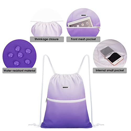 WANDF Drawstring Backpack String Bag Sackpack Cinch Water Resistant Nylon for Sport Yoga Gym Shopping (Purple Gradient)