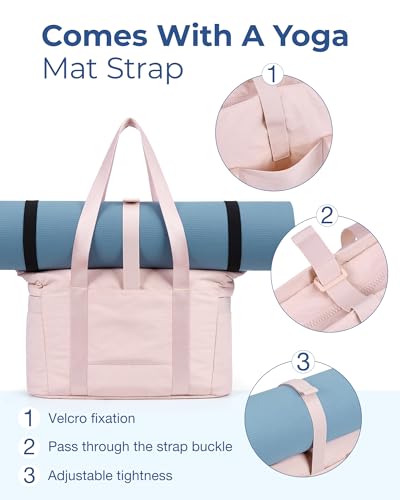 BAGSMART Tote Bag for Women, Lightweight Large Tote Bag with Yoga Mat Strap, Quilted Shoulder Bag Handbag for Travel Work Gym