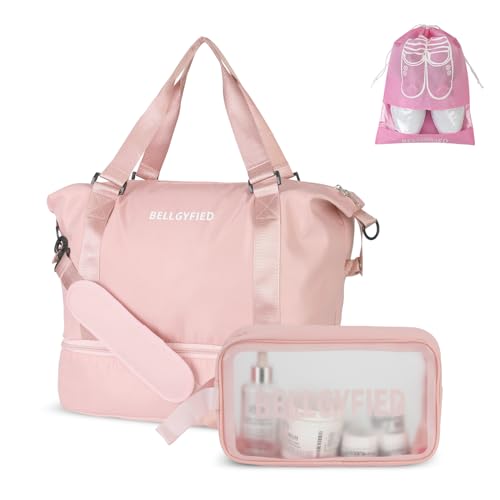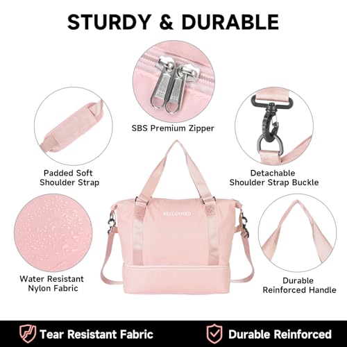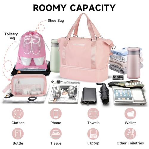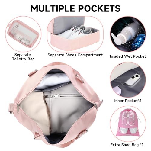 Gym Bag for Women, Gym Bag With Shoe Compartment, Sturdy & Durable Dry Wet Separated Sports Tote Travel Duffle Bag with Soft Shoulder Strap – Extra Toiletry Bag & Shoe Bag included (Pink)