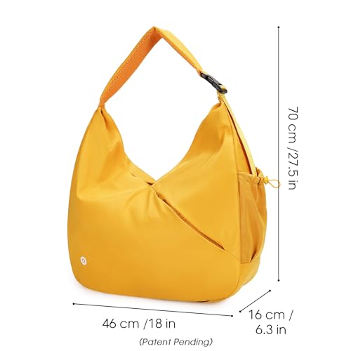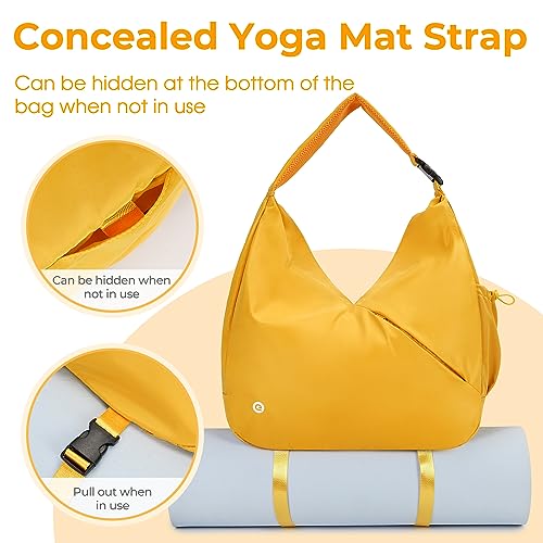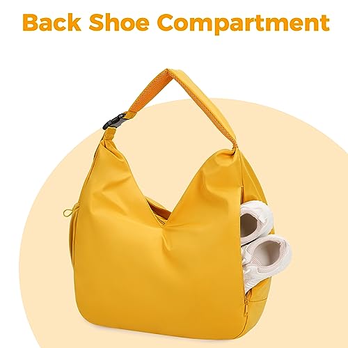 Large Gym Bag for Women Sports Duffel Bag with Hidden Yoga Mat Holder & Shoe Compartment Workout Dance Tote Bag with Wet Pocket Overnight Weekender Bag for Travel Yoga (Orange)(Patent Pending)