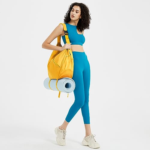 【Concealed Yoga Mat Carrying Strap】: The Ceneda gym bag ingeniously features a concealed yoga mat carrying strap at the bottom, making it convenient to hang your yoga mat, beach mat, and more. The unique storage design allows these carrying straps to be discreetly stowed away when you don’t need to transport the yoga mat, preserving the aesthetics and everyday usability.