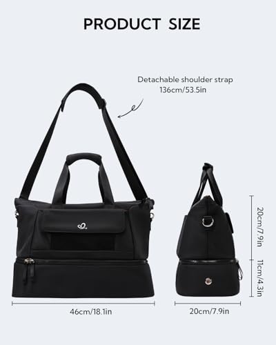 Wet and dry separation: This bag measures 18.1×12.2×7.9 inches and has waterproof lining pockets to keep your dry and wet items organized
