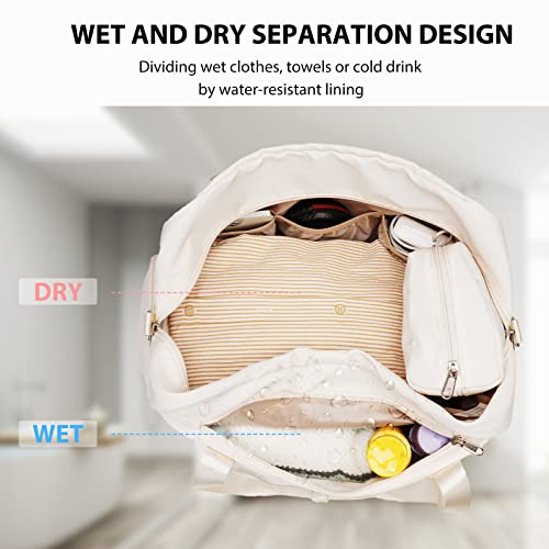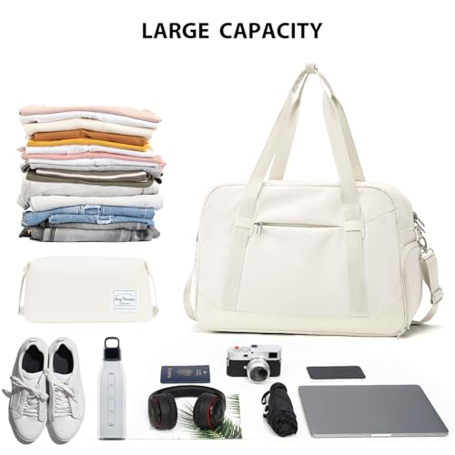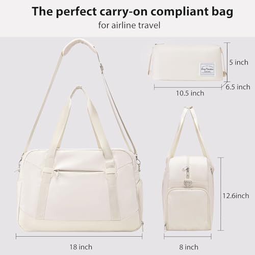 Women’s Travel Duffel Bag with Toiletry Bag, Sports Gym Bag Weekendeer Carry-on Tote with Shoe Compartment and Wet Pocket, Yoga Bag Fit 15.6inch Laptop (APRICOT WHITE, 18-inch)
