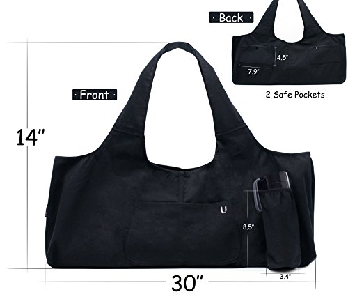 [Upgrade ]Zipper close &2 zipper POCKETS : Keep your things safe ,we add zipper on our Yoga yoga carrier tote bag . 1*extra pocket,2 zipper safe pockets,1 *bottle holder. After watching yogis with their bulky yoga gear , we create this large yoga mat bag. The bag , you can put all of things in , include 2 yoga mats , yoga blocks and yoga towel and so on . And we have extra 4 pockets .1 bottle holder,its easy to put your big sports bottle in,2 safe zipper pockets in the back