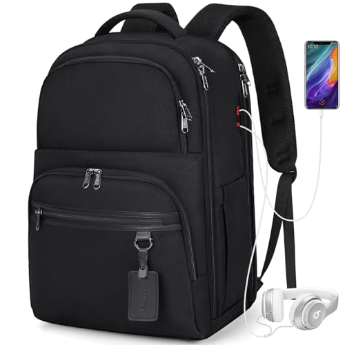 NUBILY Travel Laptop Backpack, 17 Inch Large Laptop Backpack for Men Women Flight Approved Luggage Carry On Backpack Water Resistant College Business Computer Bag with USB Port, Black