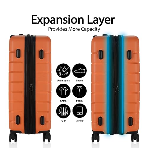 3PCS Suitcase Luggage Sets Expandable TSA Lock Spin Dual Wheels 15 Years Warranty, ORANGE