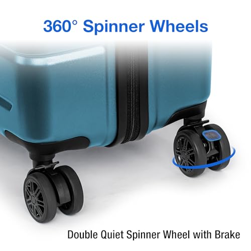 Carry On Luggage with Cup Holder,Lightweight PC+ABS Hardside Carry On Suitcase with Double Spinner Wheels Built-in TSA Lock,Light Blue