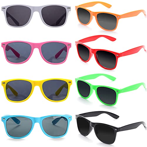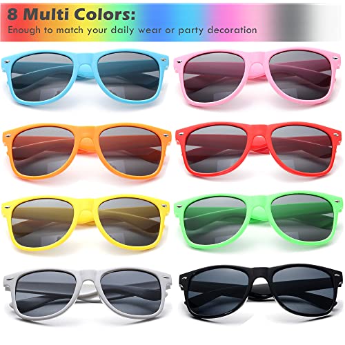Eyegla 8/12/18 Pack Neon Mirrored Sunglasses Bulk 80s Colorful Multipack Sunglasses Party Retro Glasses for Men Women