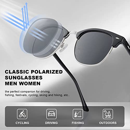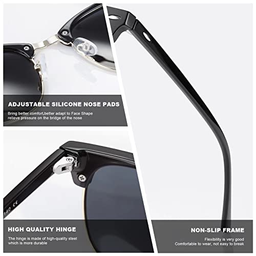 【CLUB MASTERS Sunglasses Design】 Polarized sunglasses men women are designed with retro Semi-Rimless and always been loved by trendsetters, Wearing them can allow you to better isolate UV rays and increase your fashion sense. Just Imagine how nice it would be to appreciate the beauty and color of this world without worrying about eye damage.