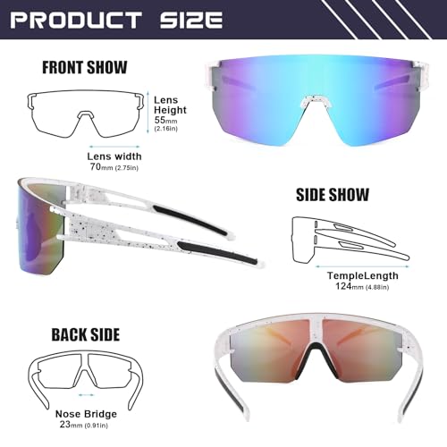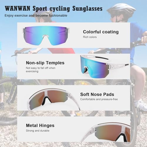WANWAN Men Women Cycling Sunglasses, 80s Sport Baseball Mirrored Sun Glasses for Youth Adults Running Softball