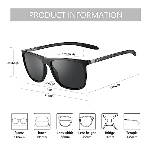 ZENOTTIC Square Polarized Sunglasses for Men Ultralight Carbon Fiber Sun Glasses Driving Fishing Golf Sports UV400 Protection