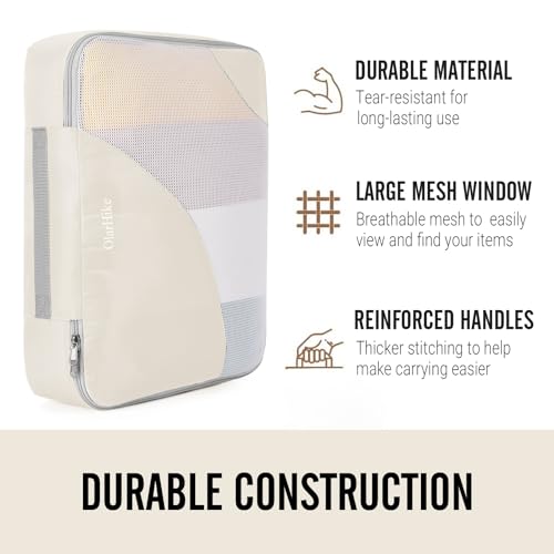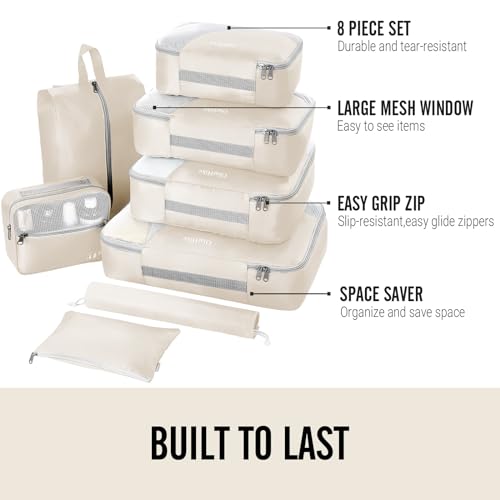 OlarHike 8 Packing Cubes Set, 4 Sizes (Extra Large, Large, Medium, Small) for Luggage Organizer, Travel Accessories and Essentials, Carry On Suitcases (Cream)