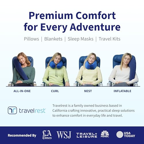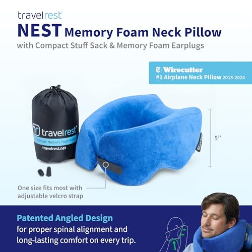 OPTIMAL SLEEP IN THE SKIES – TOP AIRPLANE NECK PILLOW FOR 2018 – 2023: ENDORSED BY THE NEW YORK TIMES WIRECUTTER. After undergoing multiple cross-country overnight flights in various seat positions—window, aisle, and center—we are confident that the Travelrest Nest Ultimate Memory Foam Travel Pillow reigns as the paramount choice. With its remarkable comfort and effortless portability, this pillow has proven itself as the ultimate travel essential.