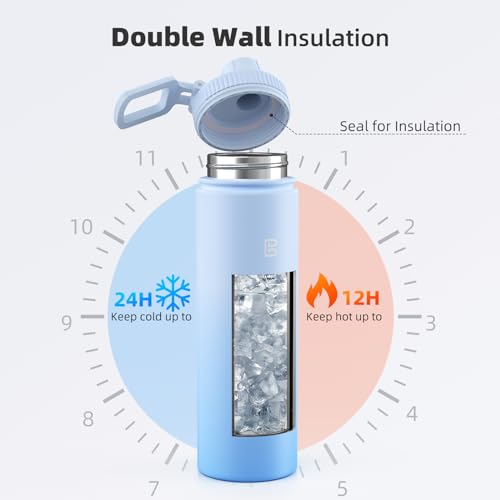【Vacuum Insulation】 Adopting unique double wall vacuum insulation technology, the liquid temperature inside the water bottle can be maintained at high temperature for 12 hours and low temperature for 24 hours. The vacuum insulation design prevents water vapor from seeping out, so even if the bottle is filled with hot water, it won’t feel hot.