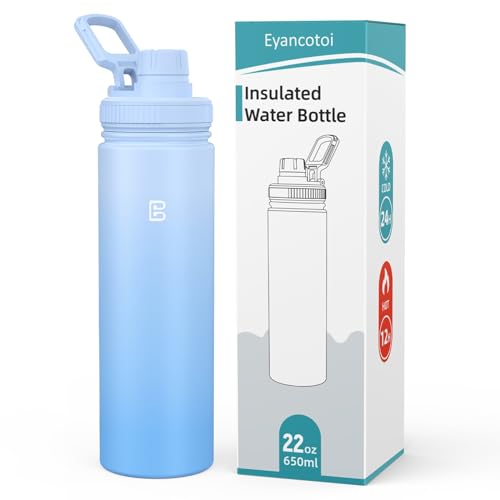 Insulated Water Bottle with Spout Lid, Reusable Stainless Steel Water Bottles with Handle, Leak Proof Sports Water Flask for Gym, Travel, Bike, Camping 22oz