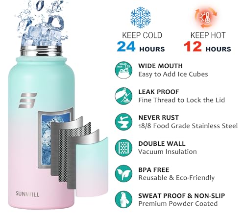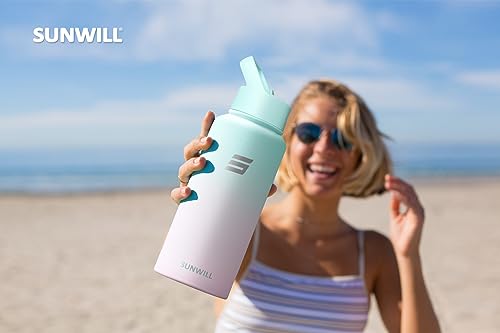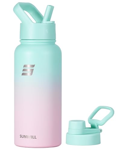 SUNWILL Insulated Water Bottle with Straw 32oz, Stainless Steel Water Bottles for Sports, Travel & Gym, Wide Mouth Flask with 2 Lids (Straw & Spout Lid), Leak Proof BPA Free Thermal Canteen