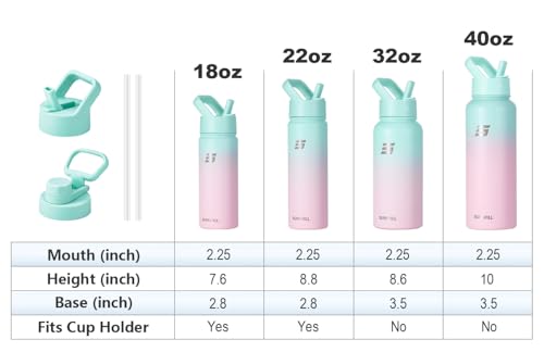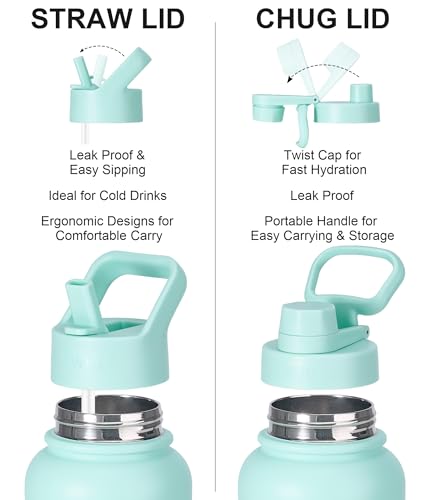 2 Lids Included, Leak Proof and BPA Free: SUNWILL Insulated water bottle comes with one straw lid, one chug lid and two straws. Both of them are leak proof and BPA free. Healthy drink is ensured, Ergonomic designed handle for easy carry around, best hydration travel bottle for your outdoor adventures, gym, hiking, camping and climbing.